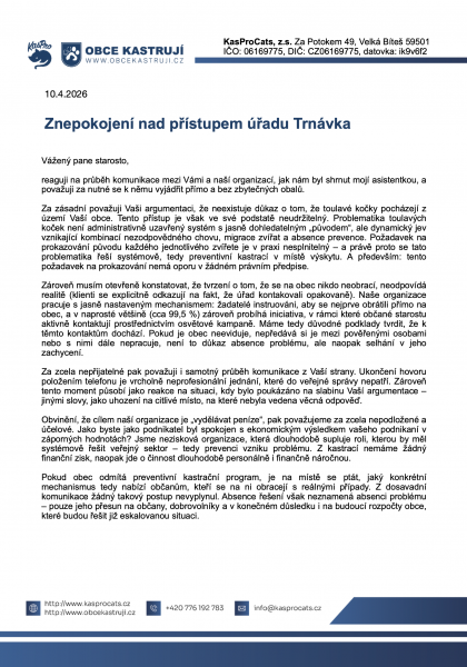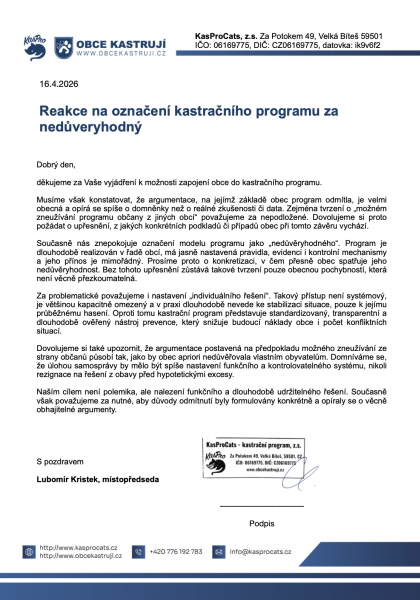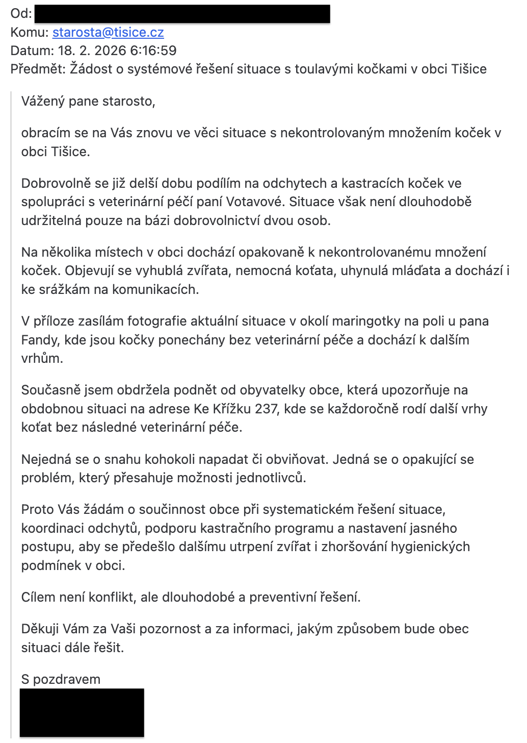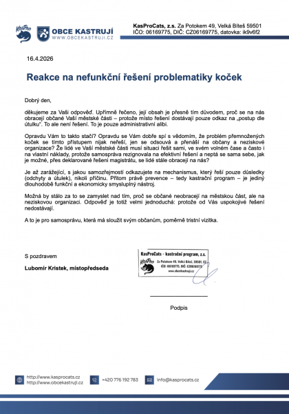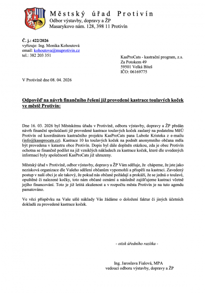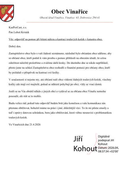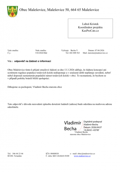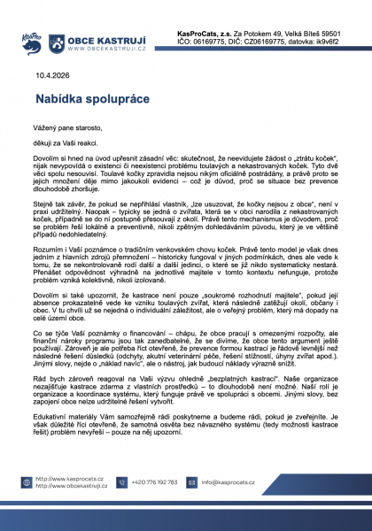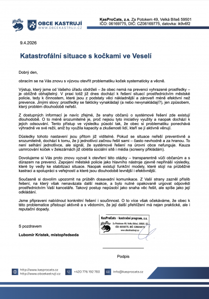 Dejte vědět obecním úřadům, že vás problematika toulavých koček a její prevence zajímá. Prostřednictvím vašeho podpisu tvoříte poptávku, o které se úředníci domnívají, že neexistuje a proto nepovažují toto téma za důležité. Podepište, prosím, naši výzvu směřovanou lokálním úřeníkům a komunálním politikům: