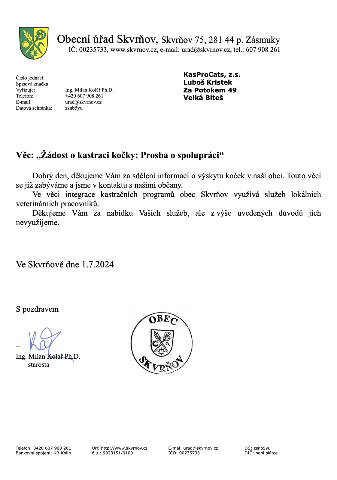 Zlatníky kastrují! Obec: Zlatníky - Hodkovice Program: Prémiový program (od roku 2026) Profil obce: zde .